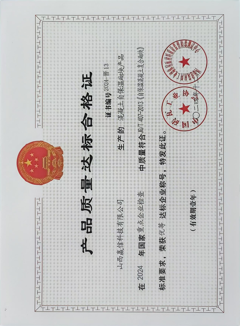 我们公司自保温砌块被列为山西省绿色建材目录