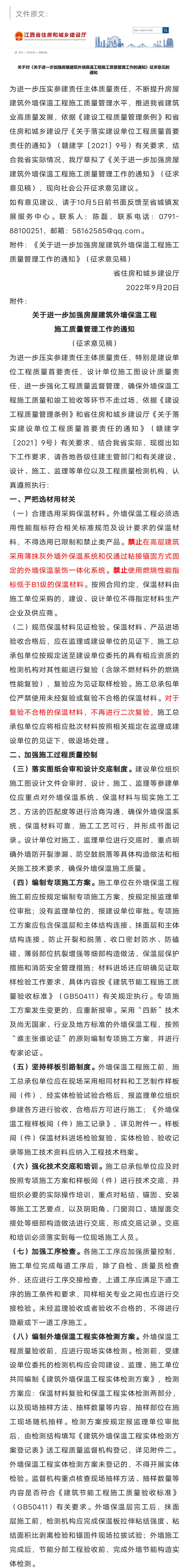 事关保温│江西省拟进一步加强房屋建筑外墙保温工程施工质量管理