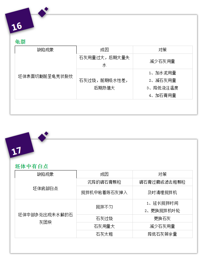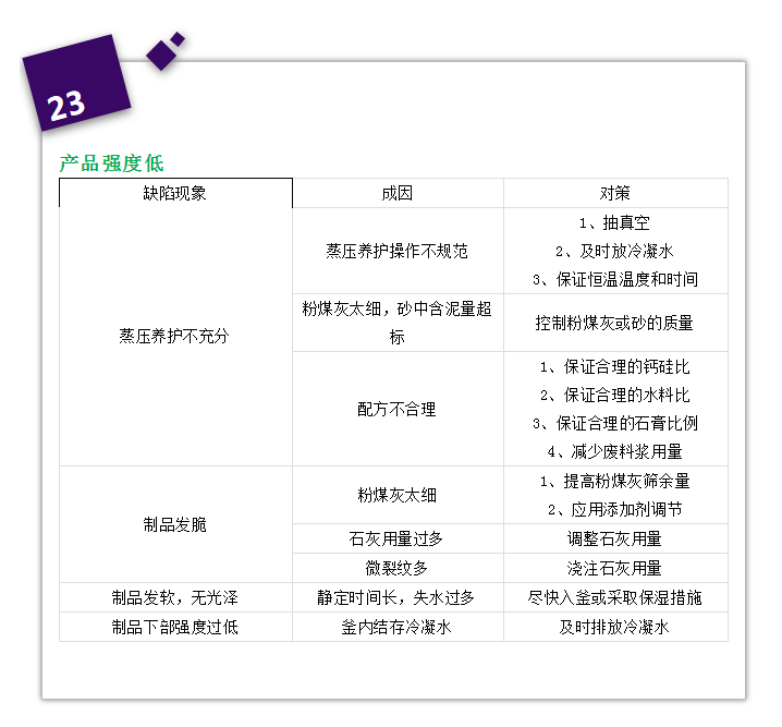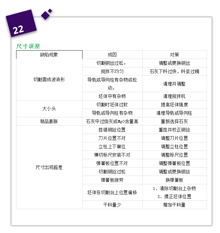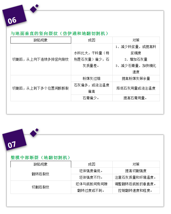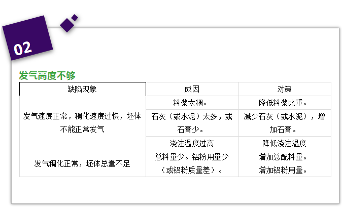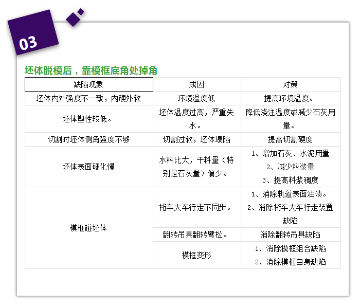 由于加气混凝土生产企业采用的原材料差异较大,工艺技术多种多样,没有一个定式能够一概而论,生产过程中的质量掌控变得尤为重要,下面总结加气混凝土生产过程中常见的缺陷成因和解决对策以供参考,不足之处,欢迎大家指正,欠缺之处欢迎评论区留言,小编会进一步完善。