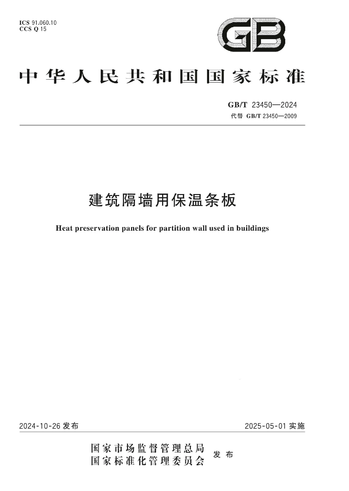 【最新标准】建筑隔墙用保温条板GB/T 23450-2024,2025年5月1日实施。