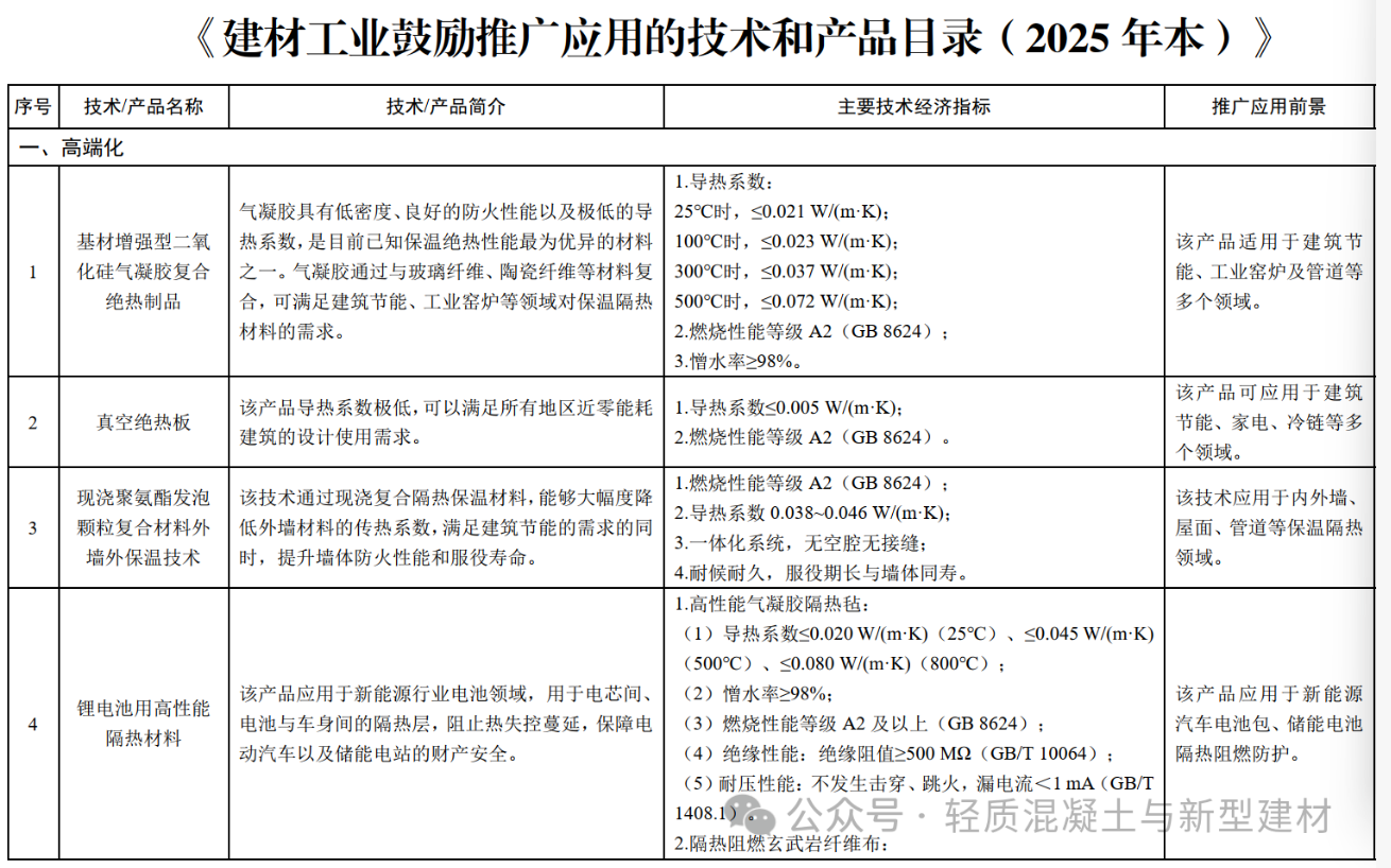 鼓励发展墙体屋面高隔热保温复合制品及部品部件等——建材工业鼓励推广应用的技术和产品目录(2025 年本)正式发布